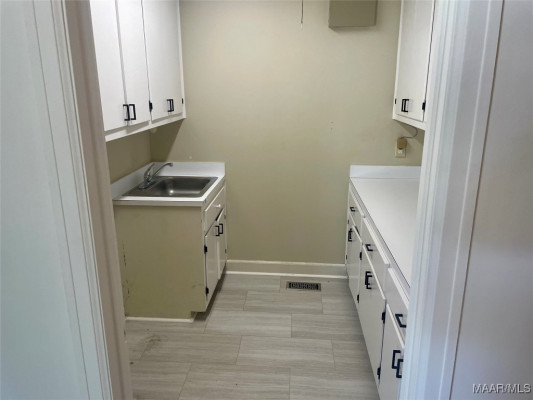 The large laundry room includes built-ins, a sink, and both gas and electric dryer hookups.