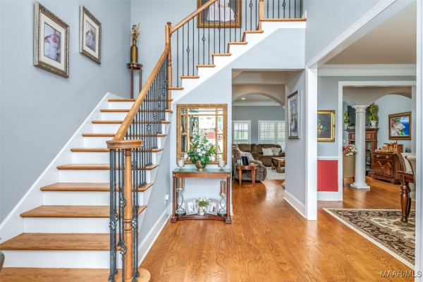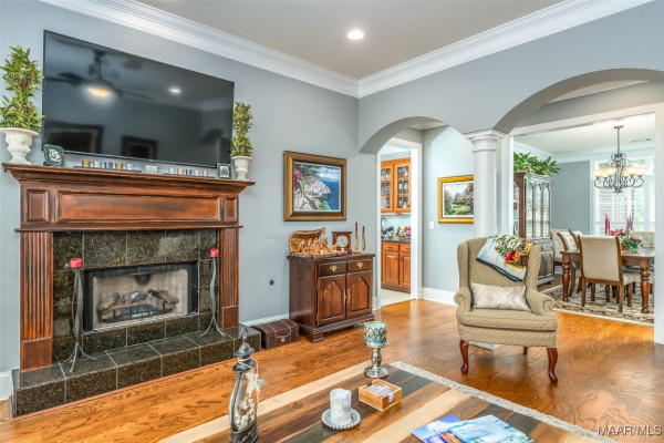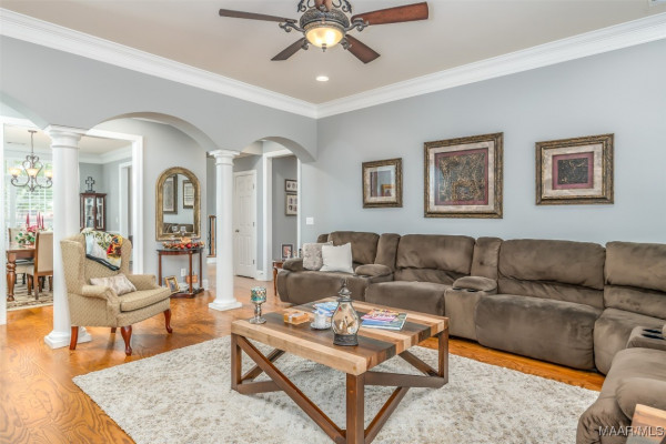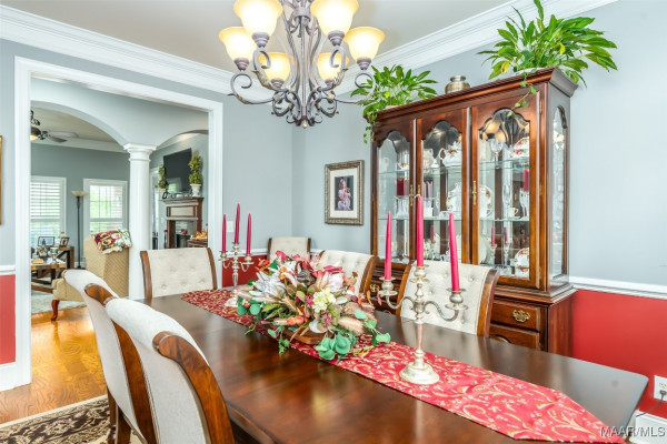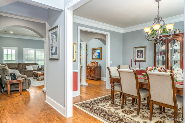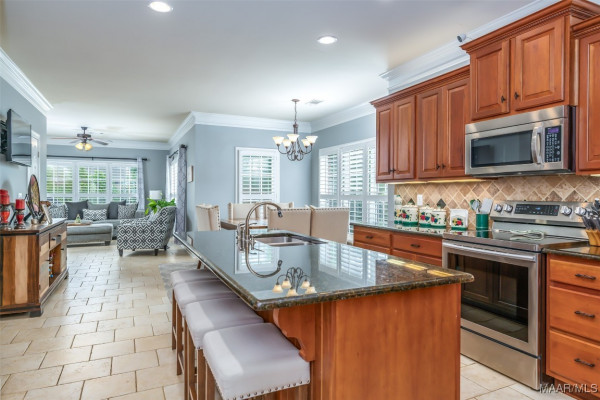 Absolutely breathtaking—this exceptional home in Sturbridge (Rockbridge) is a must-see for any family looking for space, style, and functionality! Nestled in a peaceful cul-de-sac, this 4-bedroom, 3.5-bath home with a spacious bonus room offers the perfect blend of luxury and livability. Fr/the moment you enter the grand foyer, you’re greeted w/soaring ceilings, elegant dining room,& massive living area featuring hardwood floors, stately columns, cozy fireplace, & a mounted TV that remains. The gourmet kitchen is designed for family living&entertaining, featuring stainless steel appliances (some under 2 yrs old), under-cabinet lighting, granite countertops, a functional island w/seating, a butler’s pantry,& 2 additional pantry spaces, including an oversized walk-in. Second TV in the kitchen also remains. Just off the kitchen, you will find a warm gathering space and a built-in office nook—perfect for work-from-home parents or homework time for students. The oversized laundry room adds storage& convenience, while the covered back patio & backyard oasis will take your breath away. The resort-style pool (installed in 2022) features stone pavers, a waterfall, tanning ledge, and is surrounded by the $70,000 resort-style pool &professionally landscaped yard absolutely perfect for hosting family gatherings or a peaceful staycation. The owner’s suite is a retreat of its own with a sitting/office area, luxurious bathroom w/double vanities, jetted tub,& custom walk-in closets. Upstairs, 2 bedrooms share a Jack-and-Jill bath, each w/walk-in closets &ceiling fans. The bonus room w/2 closets is ideal for a media room, playroom, or quiet study space. Add’l features include privacy-fenced backyard w/side gates for easy lawncare access, 3-car garage plus extended driveway for 4 vehicles, crown molding, & plantation shutters thru out! Security system with doorbell camera, well maintained w/professional pest control &lawncare. Don’t miss your chance to own this incredible home!