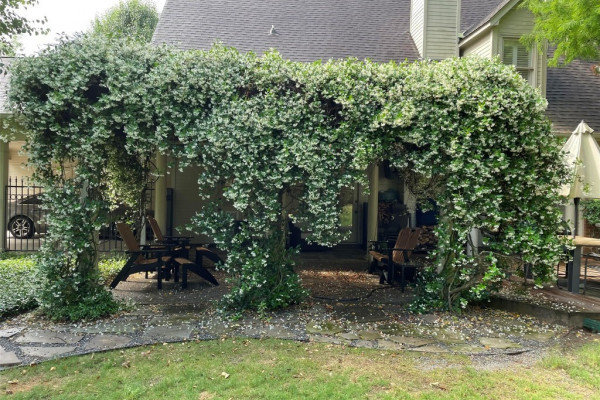 Simply beautiful is an understatement when describing the lovely private rear yard. Enjoy the covered patio and a jasmine-covered pergola, creating a serene and inviting outdoor retreat. In addition, this home has indoor wooden plantation shutters, a home alarm system and a sprinkler system.
