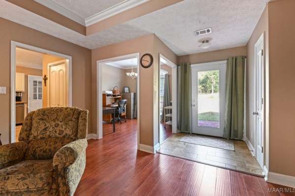 This lovely 3-bedroom, 2-bathroom home is located in a sought-after Eclectic School District, making it perfect for families. The large family room features a cozy fireplace and beautiful wood flooring, creating a warm and inviting atmosphere. The split bedroom floor plan offers privacy for the master bedroom, which includes a master bath with a double vanity, a relaxing soaker tub, and a separate shower. The yard is fully fenced, providing a safe space for kids and pets to play, while a nice partially covered porch allows for outdoor enjoyment. For those warm days, there is an above-ground pool with a surrounding deck, perfect for lounging and enjoying the water. Additionally, the insulated 2-car garage comes with fans, making it great for various uses, whether for parking or as a workspace. It’s a wonderful home with many features that cater to comfort and relaxation.