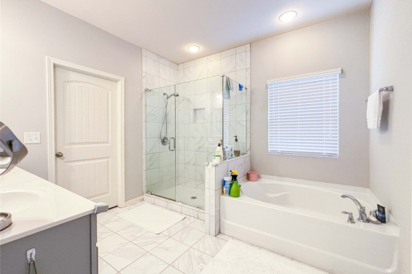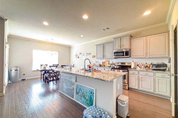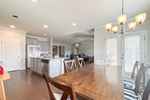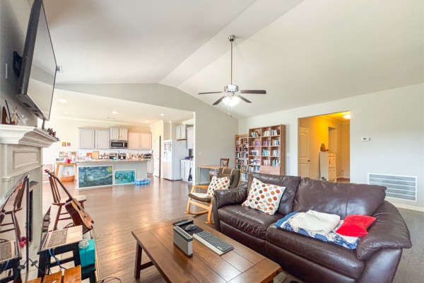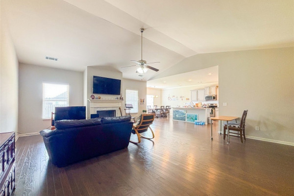 Welcome to this impeccably maintained 4-bedroom, 2-bathroom home nestled in the highly sought-after New Park neighborhood. From the moment you step onto the charming covered front porch, you’ll feel right at home.Inside, the inviting foyer leads into a spacious open-concept living area featuring a vaulted ceiling, beautiful hardwood floors, a cozy fireplace, and ample room for entertaining. The kitchen and large dining area seamlessly flow into this space, making it perfect for gatherings with family and friends.The kitchen is a chef’s dream with granite countertops, a stylish tiled backsplash, abundant cabinetry, ample counter space, a breakfast bar, pantry, and stainless steel appliances. Step out back to enjoy a covered porch and patio area, all enclosed by a full privacy fence—ideal for relaxing or entertaining. Gutters have been added to direct rainwater away from the home, enhancing functionality. The split floor plan provides maximum privacy, with the spacious master suite located on one side of the home. It features a trey ceiling with crown molding, a massive walk-in closet, a luxurious tiled shower with a frameless glass door, a garden tub, dual vanities, a separate water closet, and a linen closet. The opposite wing of the home includes three additional bedrooms, each with large closets, and a shared full bathroom with double sinks and a deep soaking tub. A generously sized laundry room is conveniently located nearby. Additional highlights include plentiful storage with multiple hall closets, a 2-car garage, added attic insulation, and attic access. As a resident of New Park, you’ll also enjoy neighborhood amenities such as a community pool, fishing lake, jogging trail, and close proximity to the YMCA. Big Bonus! Seller is giving YOU a $5,000 allowance to use however you want — closing costs, upgrades, or personal touches to make this home yours today!