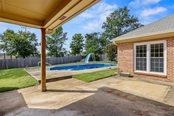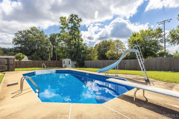 Step outside to your fully fenced backyard oasis with a sparkling pool—ideal for family fun or entertaining. A detached storage building adds practicality and convenience.