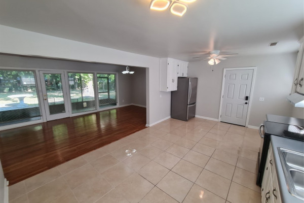 COMPLETELY REMODELED!!!!!!!! Kitchen is now open to the living room for great entertainment space plus a sunroom is accessible from the living room and from the 5th bedroom. The sunroom overlooks the back yard which is a huge yard completely fenced and lots of mature trees for shade. Stainless steel appliances in the kitchen, beautifully updated bathrooms with tile showers and new vanities. A 1 car garage has been added as well for ample parking or storage. Where else can you find such a large house and all new everything? NO PETS ALLOWED. NO SECTION8. Tenants are responsible for all yard maintenance, pest control and air filters!