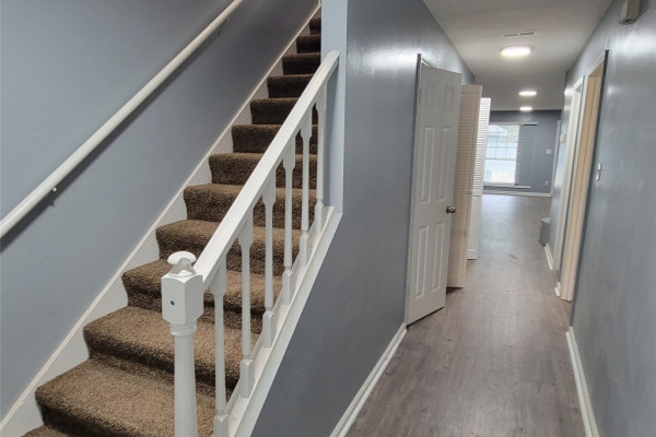 You’re going to love this fully updated home! Laminate wood floors, repainted in light gray throughout. The fireplace has been white washed. Kitchen fully updated with new countertops, stainless steel appliances and glass tile backsplash. There are 2 bedrooms downstairs as well as a bathroom and laundry room. Upstairs you’ll find the other 2 bedrooms and bathroom plus a storage closet. The privacy fenced back yard is small enough for your small pet or just to enjoy the weather on back patio. SECTION8 is accepted. PETS ALLOWED up to 25 pounds with $200 deposit per pet up to 2 pets.