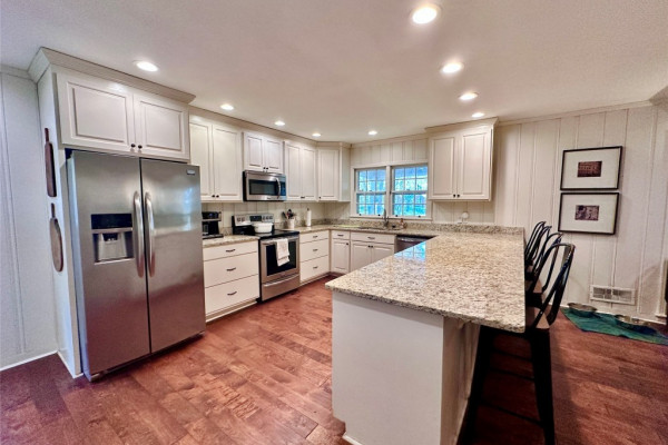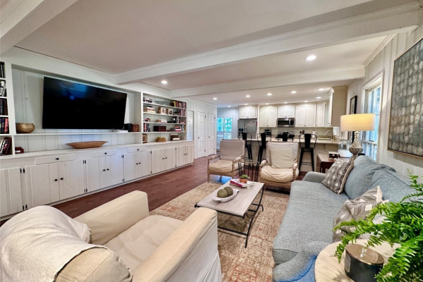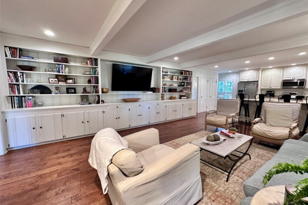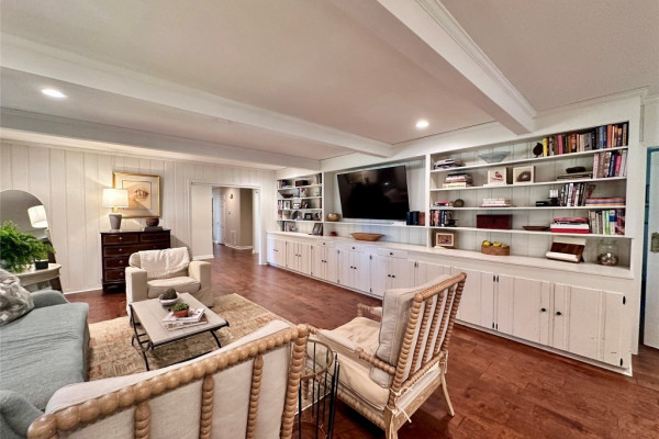 Inside, the open-concept kitchen and great room are truly the heart of the home, featuring granite countertops, custom cabinetry, wood flooring, exposed beams, and a wall of built-ins that add warmth and function. A formal dining room and separate sitting area make entertaining easy, while the spacious bedrooms and updated bathrooms offer style and practicality.