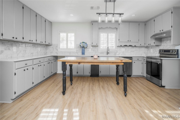 Brand NEW Roof to be installed at closing for purchaser with acceptable contract. WOW! Gorgeous home renovation including beautiful kitchen update with large work island, new backsplash, floating shelves and updated appliances. Entire home has been painted and features luxury vinyl plank floors & updated light fixtures. Home office or bonus room sits off the open dining room. Large great room looks to the fenced backyard. You will LOVE the primary suite with dream size walk in closet, inviting en suite bath with marble counter tops and tiled shower. Guest rooms are spacious, and both offer updated bathrooms. Additionally, there is a car barn and large patio for family cook outs. Make your appointment today to see this impressive property.