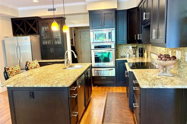 Step inside to discover an open-concept floor plan filled with natural light. The heart of the home is a gourmet kitchen featuring high-end appliances, granite countertops, custom cabinetry, a spacious island, and a walk-in pantry – perfect for both casual meals and hosting gatherings.