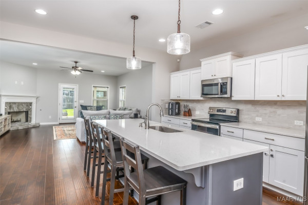!$7500. towards your closing cost when you use preferred lender Brett Dickey at Renasant Bank contact agent for details. Better than new! This gorgeous home has been professionally cleaned and is move in ready with privacy fence done, blinds installed, and covered patio. You will LOVE the gorgeous kitchen with large work island, quartz counter tops, serving bar, tile backsplash and casual dining room open to the kitchen. Great room features wood floors & fireplace. Primary suite offers a large walk in closet, separate tiled shower, soaking tub, & beautiful vanity with quartz countertops.