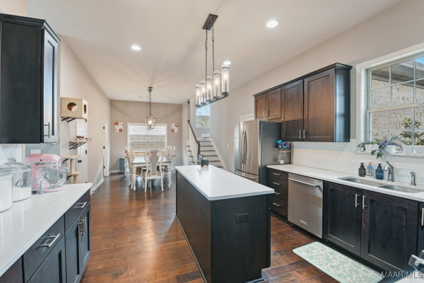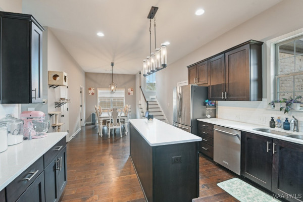 SELLER OFFERING $10,000 TOWARD TOTAL CLOSING COSTS AND BUYER’S PRE-PAID ITEMS with a full price offer! This thoughtfully designed 4-bedroom home with an upstairs bonus room offers the space, style, and functionality you’ve been searching for. Step inside to a wide foyer with wood flooring and soaring ceilings that flow throughout the living areas. Just off the foyer, a flexible formal dining room provides the perfect space for a home office, playroom, or study. The spacious family room is the heart of the home, featuring a cozy gas fireplace and transom-topped windows that frame peaceful views of the wooded area behind the home. The semi-open floor plan leads into an oversized kitchen that will impress any cook — complete with stainless steel appliances (including a refrigerator and recently upgraded dishwasher), a work island, quartz countertops, a walk-in pantry, and an abundance of cabinet space. A sunny breakfast room adjacent to the kitchen easily fits a large dining table. Upstairs, a fantastic bonus room offers endless possibilities for a media room, workout space, or additional living area. The private owner’s suite boasts tall ceilings and a spa-like bathroom with a long double-sink vanity, tiled shower, soaking tub, separate water closet, and a spacious walk-in closet. Three guest bedrooms are located on the opposite side of the home, each with great closet space and access to a full hall bath. Additional highlights include a generous laundry room with double shelving, a two-car garage, and a fully fenced backyard with a patio and a gate that opens to the tranquil forest beyond. Stoneybrooke amenities include a sparkling lake, fishing, playground, pavilion, green spaces, and walking trails — all just minutes from I-85, Chantilly Parkway, and the shops and restaurants of Eastchase. Don’t miss this rare opportunity for space, privacy, and convenience!