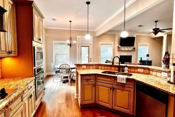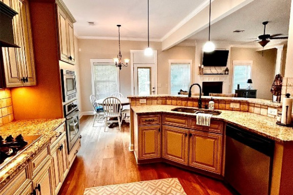 Fabulous one owner home in Providence! 1% one year interest rate buydown with preferred lender!! Wonderful curb appeal, and with over 3,600 square feet, this home has so much to offer! 5 bedrooms, 3.5 baths! Downstairs features a welcoming foyer, gorgeous dining room with coffered ceiling and wainscoting, spacious great room with fireplace and gas logs, beautiful kitchen with gas cooktop and pretty range hood, breakfast bar, under cabinet lighting, plenty of cabinets and counter space, granite countertops, pantry, wall oven/microwave, breakfast nook overlooking backyard. Also downstairs is the laundry room, an office nook with built in desk, a half bath, plus the large primary bedroom and bath. Primary bath features double vanity, garden tub and separate shower. Upstairs are 4 bedrooms, two full baths plus a spacious loft area! Two bedrooms are on each side of the upstairs (with the loft in between). There’s a shared walk thru bathroom between two bedrooms, and one hall bath on the other side. Step outside to a relaxing covered patio and a large fully fenced backyard! Two car garage and lots of concrete for extra parking! Wonderful home – priced to sell! Call today for your personal viewing!!!