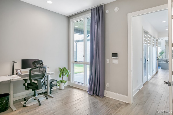 Wow! This stunning home offers a lifestyle rarely found in Montgomery! Its 22′ soaring glass walls offer plenty of light and plenty of style. The open kitchen has cabinets to the ceiling, Kitchenaid appliances with a gas range and a glass wall onto the patio. The main floor contains the large Master bedroom a spa like master bath with a wet area containing a freestanding tub, open shower with 4’x 8′ tile walls and a frameless glass enclosure- pure luxury. On the 2nd level, on either end of the Catwalk, there are large bedrooms. There also are two bath rooms and a separate Flex room. Located on a corner lot makes the fully fenced courtyard amazingly large.
