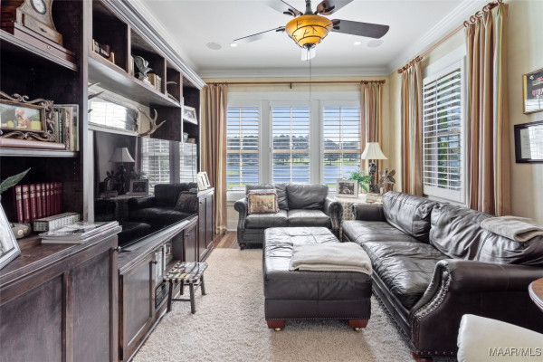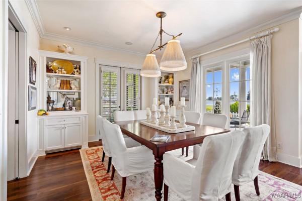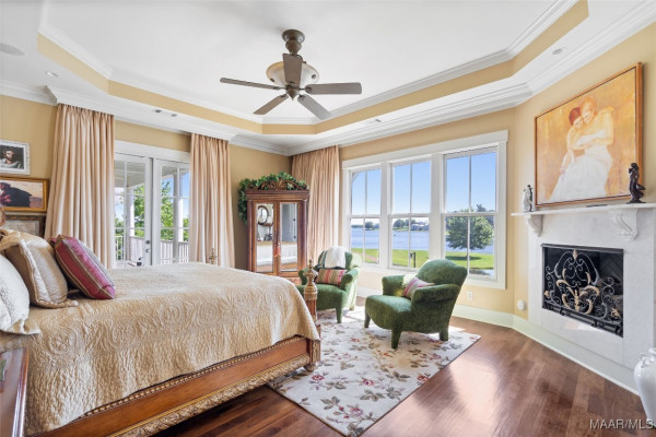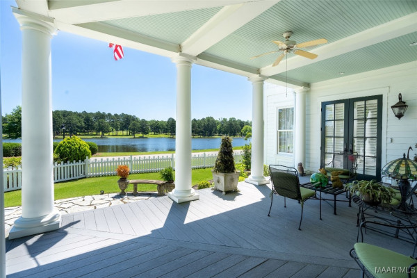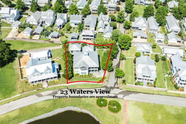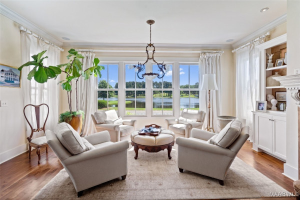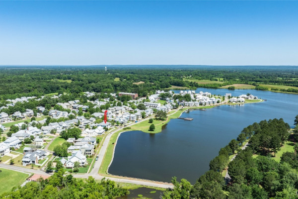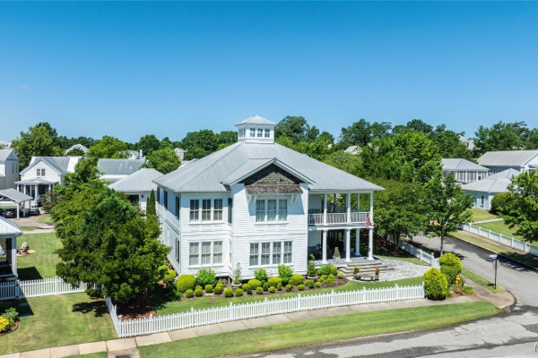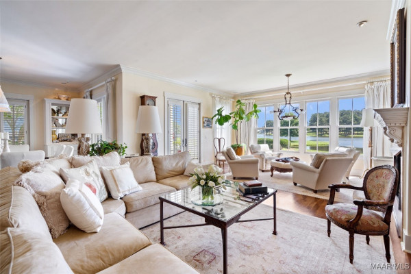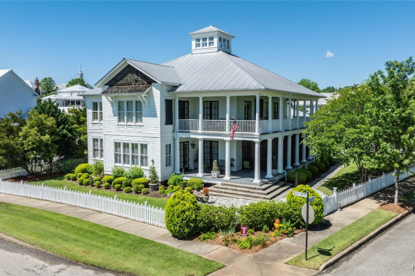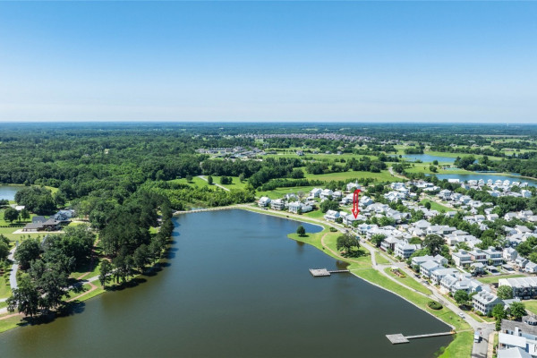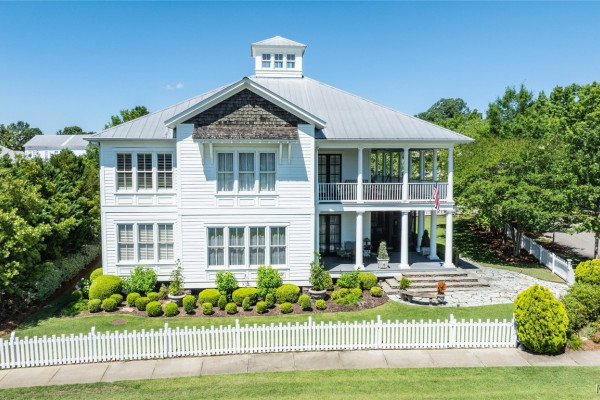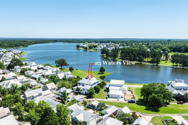 This iconic home located in The Waters is timeless in design and modern in amenities. Boasting 5,800 square feet (sf) the home includes a total of 6 bedrooms and 6.5 bathrooms. In addition to living space there is an additional 1,619sf of lakeside porches and 3 garage bays. (Main House includes 4,805sf & Carriage House includes 995sf of living space. Over 8,400sf – total under roof sf.) Custom built, this one-owner home was intentionally crafted to allow for comfort & elegance. The grand entry way leads to a panoramic view of the 200-acre Lake Cameron and boasts walnut floors, a grand fireplace, built in bookshelves & more. The cook’s kitchen includes double oven, custom cabinet design, Subzero refrigerator, marble countertops, island & appliance garage. Spacious bedrooms and full bathrooms are perfectly arranged throughout for function and flow. The spa-like primary bedroom enjoys uninterrupted lake views, porch access, a gas-ventless fireplace & adjoining bath suite and closet with custom cabinetry. From home offices to playrooms or fitness spaces, the layout includes a variety of rooms to fit your routine. The fully equipped wet bar features custom cabinetry, wine cooler and built in ice maker, perfect for effortless entertaining. All porches have Trex flooring for longevity & durability and enjoy sweeping views of the lake & lush landscaping. Large screened porch entrance from dining room & kitchen. The utility room includes laundry sink, so much storage space & a pet door. Plantation shutters, security system, full house sound system and custom draperies all remain. The conventional foundation system was enhanced with a fully encapsulated crawl space which adds protection and enhances energy efficiency. Don’t miss the carriage house. White pine floors and ceilings surround this fully equipped carriage house that lives like a complete home – just on a smaller scale. This and so much more in this well – appointed lake front home. Ask about The Waters amenities!