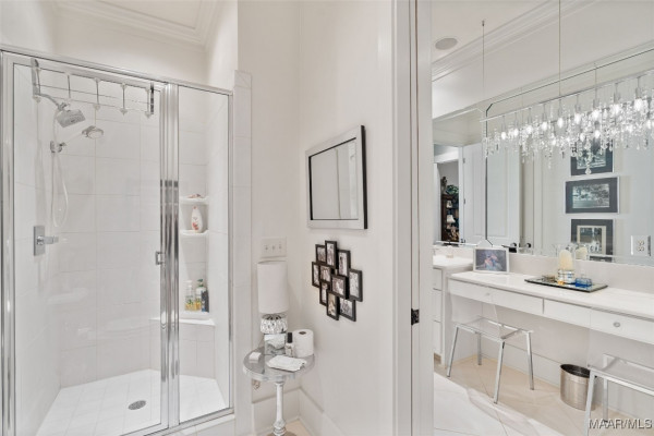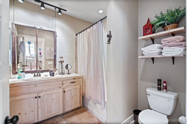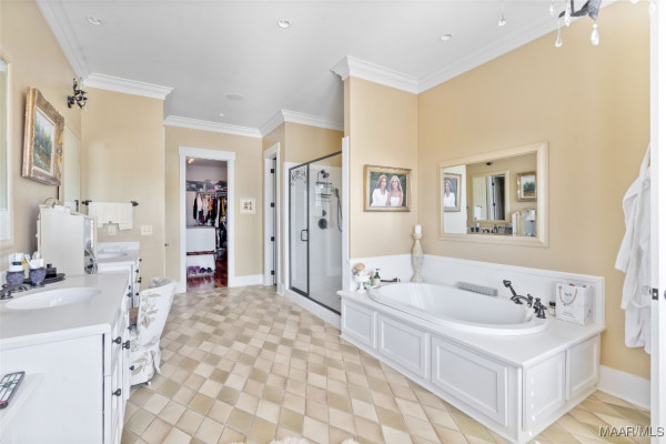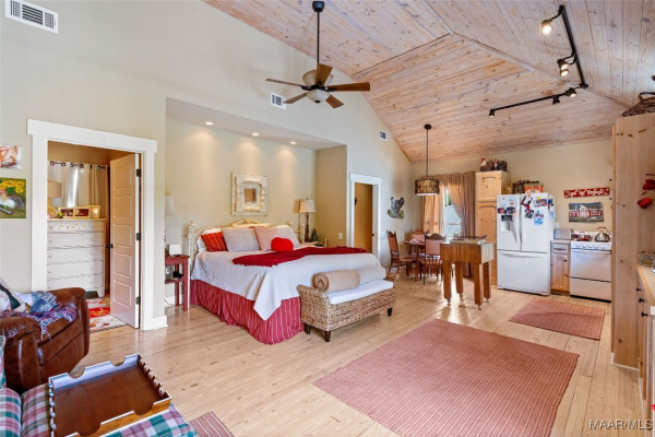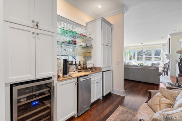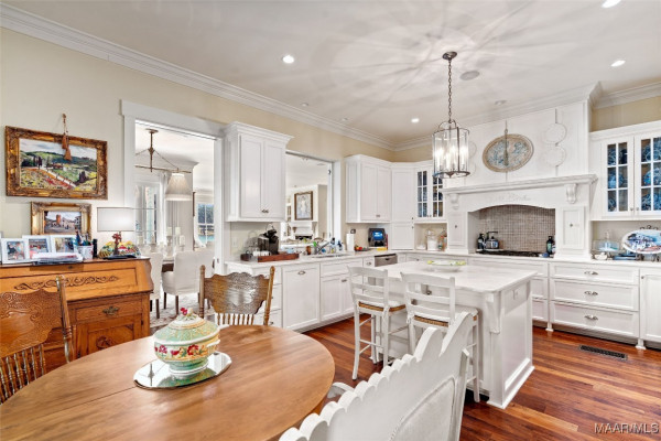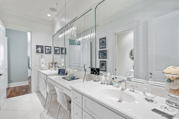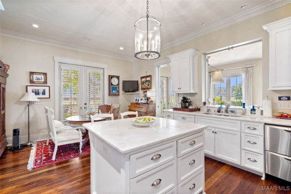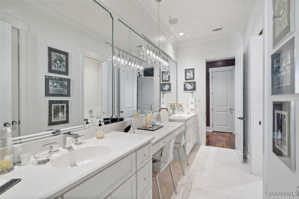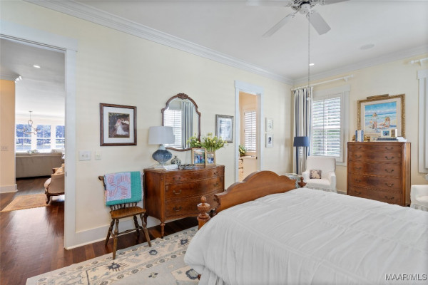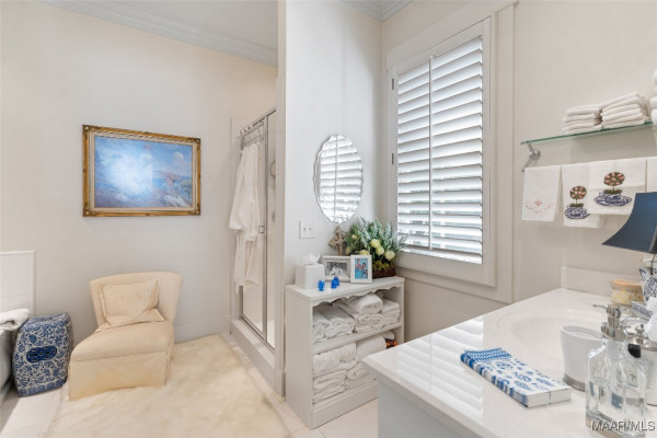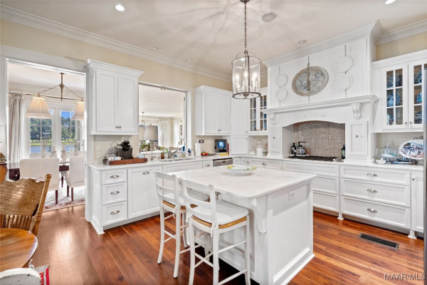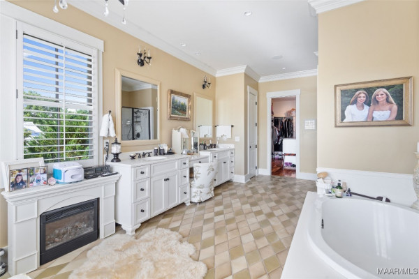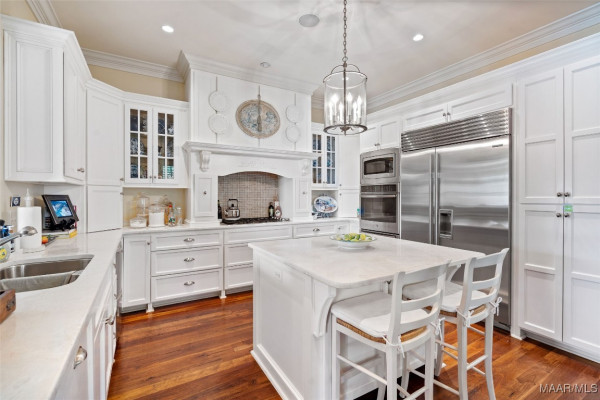 This iconic home located in The Waters is timeless in design and modern in amenities. Boasting 5,800 square feet (sf) the home includes a total of 6 bedrooms and 6.5 bathrooms. In addition to living space there is an additional 1,619sf of lakeside porches and 3 garage bays. (Main House includes 4,805sf & Carriage House includes 995sf of living space. Over 8,400sf – total under roof sf.) Custom built, this one-owner home was intentionally crafted to allow for comfort & elegance. The grand entry way leads to a panoramic view of the 200-acre Lake Cameron and boasts walnut floors, a grand fireplace, built in bookshelves & more. The cook’s kitchen includes double oven, custom cabinet design, Subzero refrigerator, marble countertops, island & appliance garage. Spacious bedrooms and full bathrooms are perfectly arranged throughout for function and flow. The spa-like primary bedroom enjoys uninterrupted lake views, porch access, a gas-ventless fireplace & adjoining bath suite and closet with custom cabinetry. From home offices to playrooms or fitness spaces, the layout includes a variety of rooms to fit your routine. The fully equipped wet bar features custom cabinetry, wine cooler and built in ice maker, perfect for effortless entertaining. All porches have Trex flooring for longevity & durability and enjoy sweeping views of the lake & lush landscaping. Large screened porch entrance from dining room & kitchen. The utility room includes laundry sink, so much storage space & a pet door. Plantation shutters, security system, full house sound system and custom draperies all remain. The conventional foundation system was enhanced with a fully encapsulated crawl space which adds protection and enhances energy efficiency. Don’t miss the carriage house. White pine floors and ceilings surround this fully equipped carriage house that lives like a complete home – just on a smaller scale. This and so much more in this well – appointed lake front home. Ask about The Waters amenities!