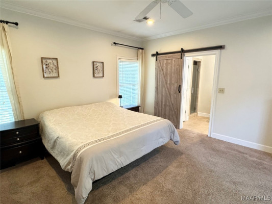 Beautifully updated and maintained 4 bedroom 3 bath home on coveted Rosemont Drive. Gorgeous spaces with wood floors and plantation shutters, eat in kitchen with adjoining breakfast room, spacious den, primary bedroom suite w/deep walk in closet, two renovated guest baths and rear patio with fully fenced backyard. NEW roof (2022), and NEW HVAC system (2024). Foyer flows into a gracious dining room with adjacent flex space, great for office or study. Kitchen features granite counters, breakfast bar, stainless appliances with double oven, cabinets with new hardware, convenient door leading to driveway and pass through window to den. The fabulous den addition boasts a gas fireplace, custom built ins, tons of natural light and new sliding glass door to rear patio. Three guest bedrooms all with hardwood floors and excellent closet space. Both guest bathrooms have been tastefully updated. Large primary bedroom suite with expanded walk in closet, door to patio and spacious bath with barn door, separate shower with tile floor, double vanity, and garden tub. Rear yard is fully fenced with detached storage building, lawn mower shed and extra parking pad. Great Midtown location near Myrtlewood Park, Cloverdale shops and restaurants, Maxwell AFB and downtown Montgomery. Do not miss this fantastic turnkey home!