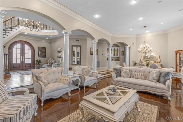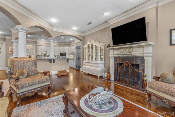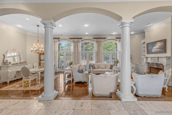 EXCEPTIONAL LUXURY! Located on the 11th green in Wynlakes, this stunning 4-bedroom, 3 full and 2 half-bath home offers everything you’ve been searching for and more! Elegant mahogany double doors open to a grand two-story foyer, showcasing a striking curved staircase. Just beyond the foyer, the open-concept living and dining areas feature beautiful wood floors, a cozy gas fireplace, and two sets of doors leading to a covered patio—perfect for outdoor gatherings. The chef’s dream kitchen is equipped with top-tier stainless steel appliances, including a Wolf oven, Sub-Zero refrigerator, and a Rally & Pickle dishwasher. With sleek granite countertops, a spacious island, and a pantry, the kitchen seamlessly flows into the breakfast area and inviting gathering room with its own fireplace.