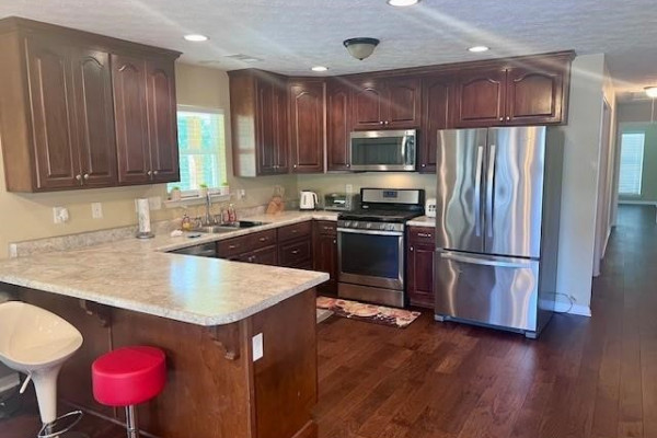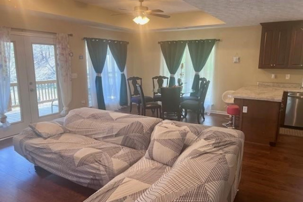 Great home on Lake Jordan. This home is like new. Entry foyer leading into the large great room with fireplace. All open to the dining room and kitchen. There’s also an open porch and screened porch on this level. Main bedroom has a large bathroom with a walk-in closet. The two other bedrooms are also on this level. Good sized laundry/utility room. The home has luxury vinyl plank flooring. Downstairs there are two large rooms, one has a door leading to a covered outdoor area overlooking the lake. There’s a dock and boathouse. Also a large workshop with a storm shelter inside. Covered parking. Lots of wildlife in this area.