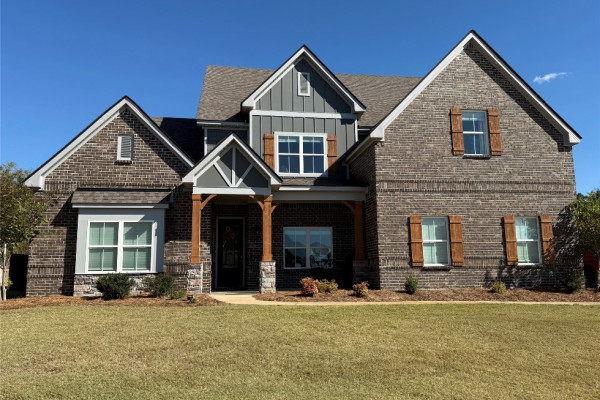 Gleaming hardwood flooring flows from the foyer, kitchen, dining and great room, to meet the impressive stair case at the rear of the home. Ten foot ceilings add to the appealing downstairs area featuring a gourmet kitchen with built in appliances and the best granite island to entertain family or friends. Workable laundry room is large enough for a freezer or an over abundance of cleaning apparatuses. Grand master suite leaves no detail overlooked with its sitting area, massive closet, and posh master bath with double granite vanities, separate full tile shower with heavy glass door, and garden/soaking tub. Room for all in the upstairs with three huge bedrooms and bonus/media room as well. Closet space is unsurpassed and will accommodate the over flow from the bedrooms and living areas. This plan is a cut above offering several living options. Covered rear patio looks out onto level, private lawn. Cul-de-sac lot, two car side loading garage, energy saving spray foam insulation, tank-less water heater and so many other smart features are offered in this amazing home. The fully fenced backyard overlooks a wooded area, providing peace and privacy. Glennbrooke subdivision affords the new owner the ability to use the pools, work out room, playgrounds, pond, 3.5 acre park, splash pad, and pavilion. Conveniently located to Maxwell Air Force base and downtown Montgomery.