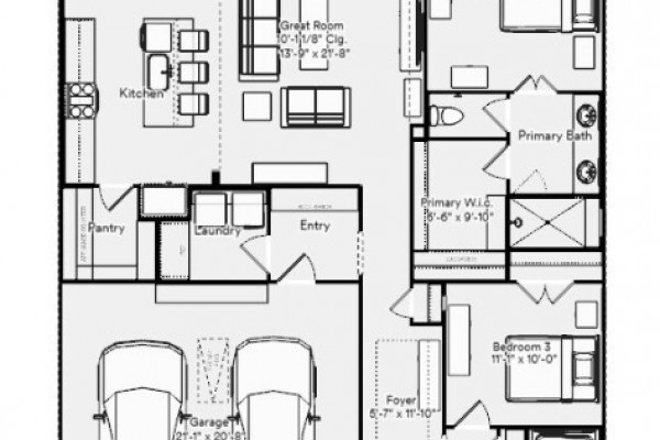 The Hartford Craftsman is designed to complement today’s active lifestyle, featuring three bedrooms and two bathrooms in a well-planned, open layout that’s perfect for everyday living and entertaining alike. Thoughtful details enhance functionality throughout the home, including a mudroom-style owner’s entry that helps keep things organized and a built-in luggage shelf in the primary closet for added storage.