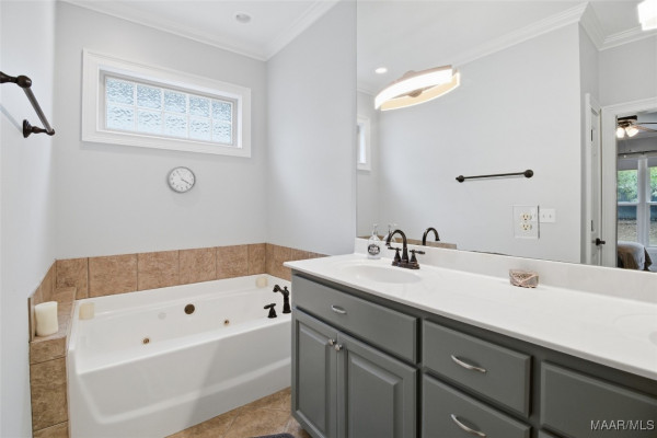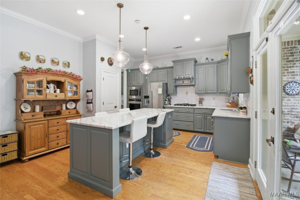 Prestigious Grove Park beauty! Located behind a stunning gated entrance, this highly sought-after community offers an exceptional lifestyle—and this beautifully designed 3-bedroom, 2-bath home with a 2-car garage is loaded with upgrades. Step inside to an open, airy floor plan featuring high ceilings, custom details, rich wood floors, and elegant tile throughout. The spacious living area welcomes you with custom built-ins, a gas fireplace, and warm wood flooring, creating the perfect space to relax or entertain. The chef-inspired kitchen is the heart of the home, boasting marble countertops, stainless steel appliances, abundant cabinetry, a pantry, and a large work island with bar seating for six—ideal for gatherings and everyday living. Just off the kitchen, the formal dining room offers ample space for hosting family and friends. The oversized owner’s suite is a true retreat, featuring a luxurious bath with a jetted garden tub, separate tiled shower, double vanities, and a generous walk-in closet. Two additional bedrooms are spacious and well-appointed, and the second bathroom has been beautifully remodeled, offering stylish finishes and added comfort for guests or family. Enjoy outdoor living on the covered back patio, overlooking a private, professionally landscaped backyard with sprinkler system—perfect for entertaining or unwinding. This home is just minutes from—and within walking distance to—Grove Park’s incredible amenities, including two stocked fishing ponds, an indoor saltwater pool, fitness facility, walking trails, The Farm, weekly social hours, and more. A remarkable home in an exceptional community—don’t miss this opportunity!