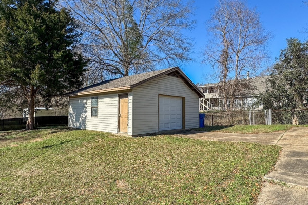Down the hallway, you’ll find four bedrooms and two bathrooms. Both bathrooms have been renovated, and the primary bathroom features a Jack-and-Jill layout with a tile shower. New ceiling fans have been installed in the home. The house is equipped to run the HVAC system, lights, outlets, and microwave via a portable generator (not provided) using a 30-amp cord in the event of a power outage. Outside in the back, you will find a patio, a fully fenced yard, plus a large detached garage with concrete driveway access, perfect for all your storage or hobby needs. Call today to schedule a tour of this home!
