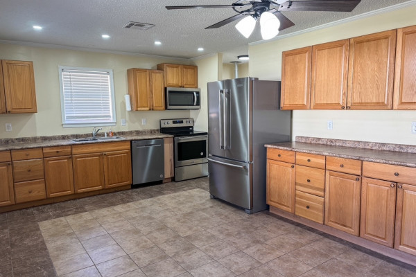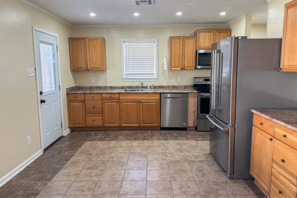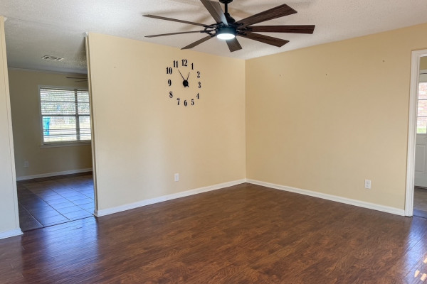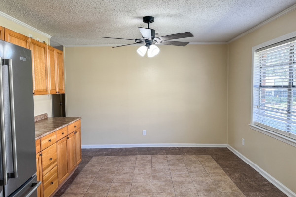 Move-in ready 4-bedroom, 2-bath home located in Country Club Estates in Prattville. Upon arrival, the front porch welcomes you into the living room, filled with natural light and featuring laminate flooring. The spacious eat-in kitchen offers stainless steel appliances (approximately two years old), ample cabinetry, and a large dining area with tile flooring. Additional pantry space is located just off the kitchen. The laundry room is conveniently located inside the home and provides access to enter the home from the parking area.