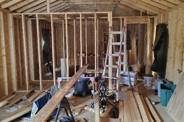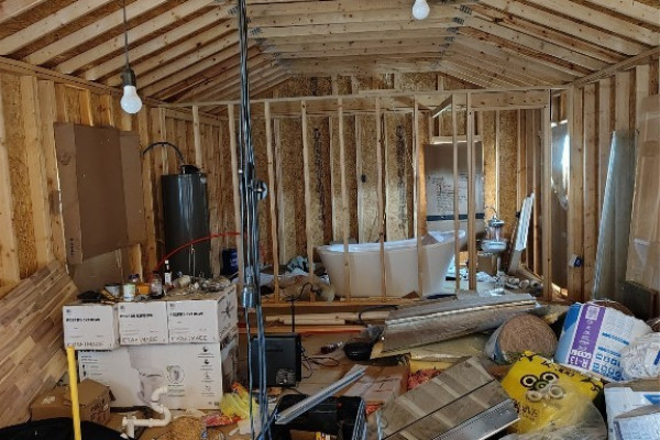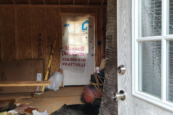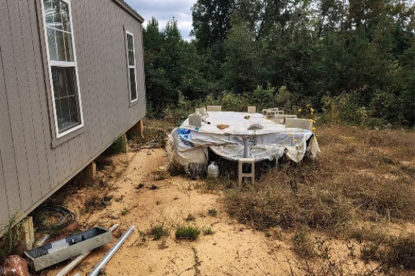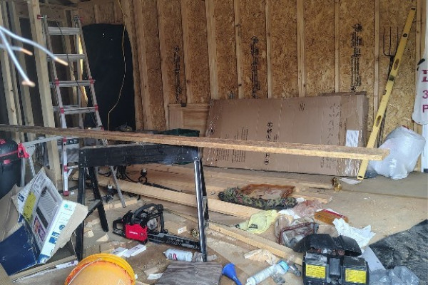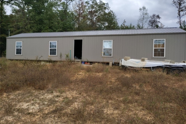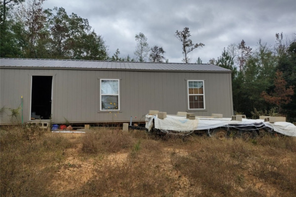 2023 16×60 building was being set up as a one bedroom home. Approximately 1/3 complete. Owner is leaving all the supplies to complete this project, counter tops, sinks, cabinets, etc. Soaker tub is installed, also has brand new side by side stainless steel refrigerator (not on property). Knotty pine boards to complete interior, they need to be planed. Owner is also leaving all types of goodies with the property, such as a 1943 Ford tractor. Per owner it runs-needs battery.