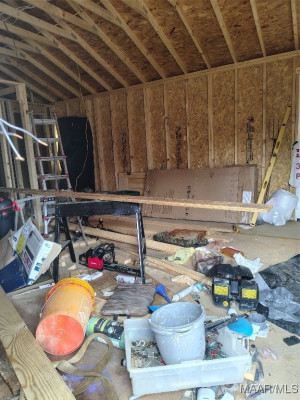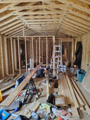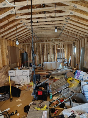 2023 16×60 building was being set up as a one bedroom home. Approximately 1/3 complete. Owner is leaving all the supplies to complete this project, counter tops, sinks, cabinets, etc. Soaker tub is installed, also has brand new side by side stainless steel refrigerator (not on property). Knotty pine boards to complete interior, they need to be planed. Owner is also leaving all types of goodies with the property, such as a 1943 Ford tractor. Per owner it runs-needs battery.