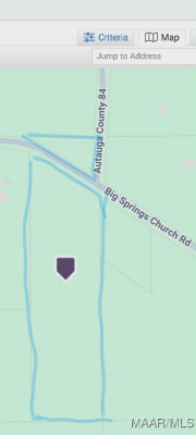 Exactly 21 miles from the corner of Highway 82 and Highway 31 in Prattville. Take Highway 82 to Country Road 79 (Also known as Big Springs Church Road) and turn right. Go approximately 3 miles. 1st sign will be on your left. 2nd sign will be on your right. These are the approximate property lines. See tax map in pictures.