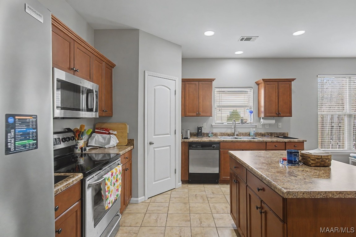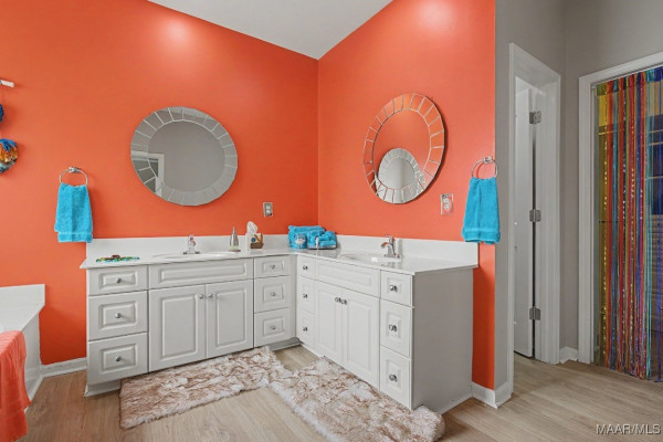 Welcome to this charming three-bedroom garden home offering approximately 1,932 square feet of comfortable living space, situated on a spacious corner lot. Bright, inviting living areas create a warm and welcoming atmosphere, highlighted by a wood-burning fireplace. The extra-large primary suite features two vanity sinks, a private en-suite bath, and an impressive custom walk-in closet. The home also offers a large eat-in kitchen with ceramic tile flooring, a pantry, and an island—ideal for both everyday living and entertaining. Two additional bedrooms share a well-appointed full bathroom. An easily accessible walk-up attic provides excellent potential for future expansion with full renovation. Recent updates and upgrades include waterproof luxury vinyl plank flooring throughout the home (excluding the kitchen), a new hot water heater, upgraded ceiling fans throughout including the patio, added electrical outlets and electrical improvements, a state-of-the-art HVAC system installed in 2022, fresh interior paint completed in 2023, a fenced yard with a new wide gate, and a roof replacement completed in 2024.