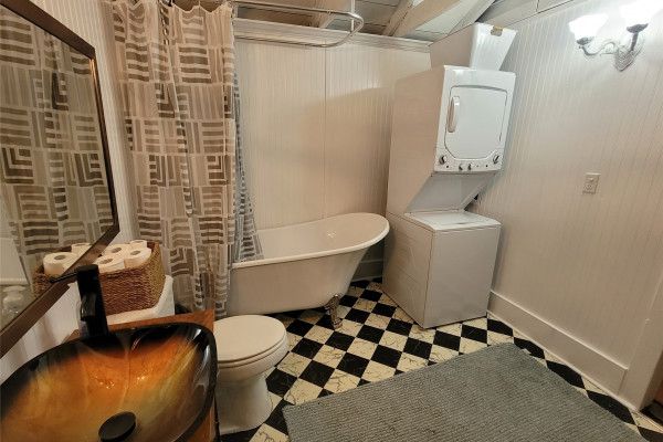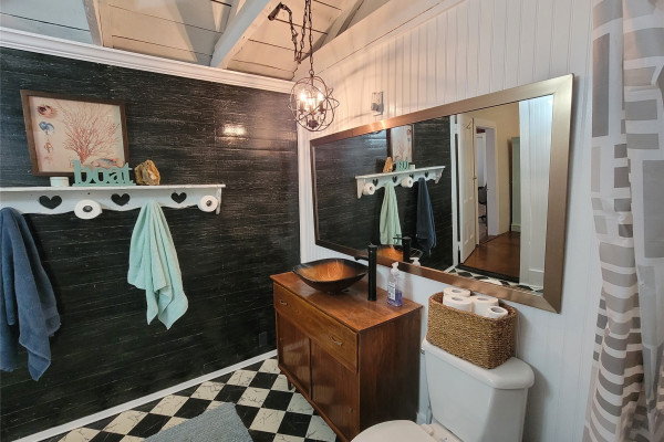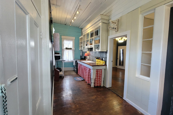 Featuring a stone fireplace, claw foot bathtub, this home has retained all the character while providing modern conveniences. The property, recently surveyed and staked spans two lots totaling .63 acres and is nestled within a lush food forest. Outdoors, enjoy a fenced backyard, brick BBQ pit, concrete patios, 2 wells, additional 12×12 studio with electricity- plus a garden shed/playhouse!