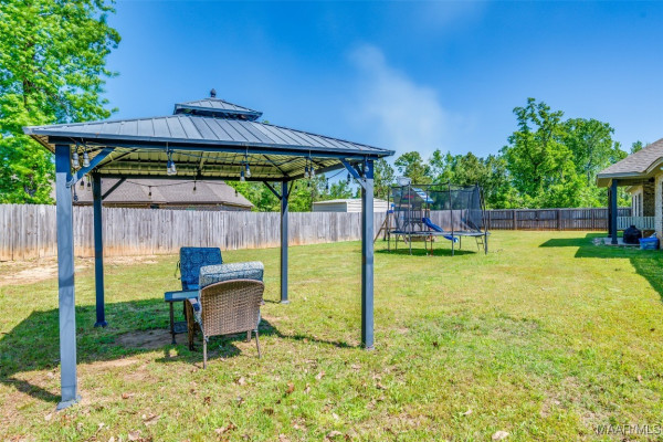 Move-in ready 4-bedroom, 2-bath home on a spacious corner lot in the highly sought-after Windmill Ridge subdivision! This beautifully maintained property features an open and airy floor plan with high ceilings and hardwood flooring throughout the main living areas! The large eat-in kitchen boasts granite countertops, tile backsplash, stainless steel appliances, and bar seating—perfect for everyday living and entertaining! The kitchen flows seamlessly into the family room with fireplace and adjacent dining area, offering a comfortable and connected living space! The private primary suite includes a large en-suite bathroom with double vanities, garden tub, separate shower, and walk-in closet! Three additional bedrooms are located on the opposite side of the home, providing flexibility for guests, home office, or playroom needs! Additional highlights include a 2-car garage, covered back patio, and a fully fenced backyard with plenty of space to enjoy outdoor living! Energy-efficient spray foam insulation helps reduce utility costs! Conveniently located near shopping, dining, and quick access to the interstate! Call for a private showing! **Purchaser to verify school zones**