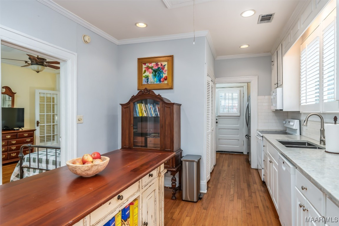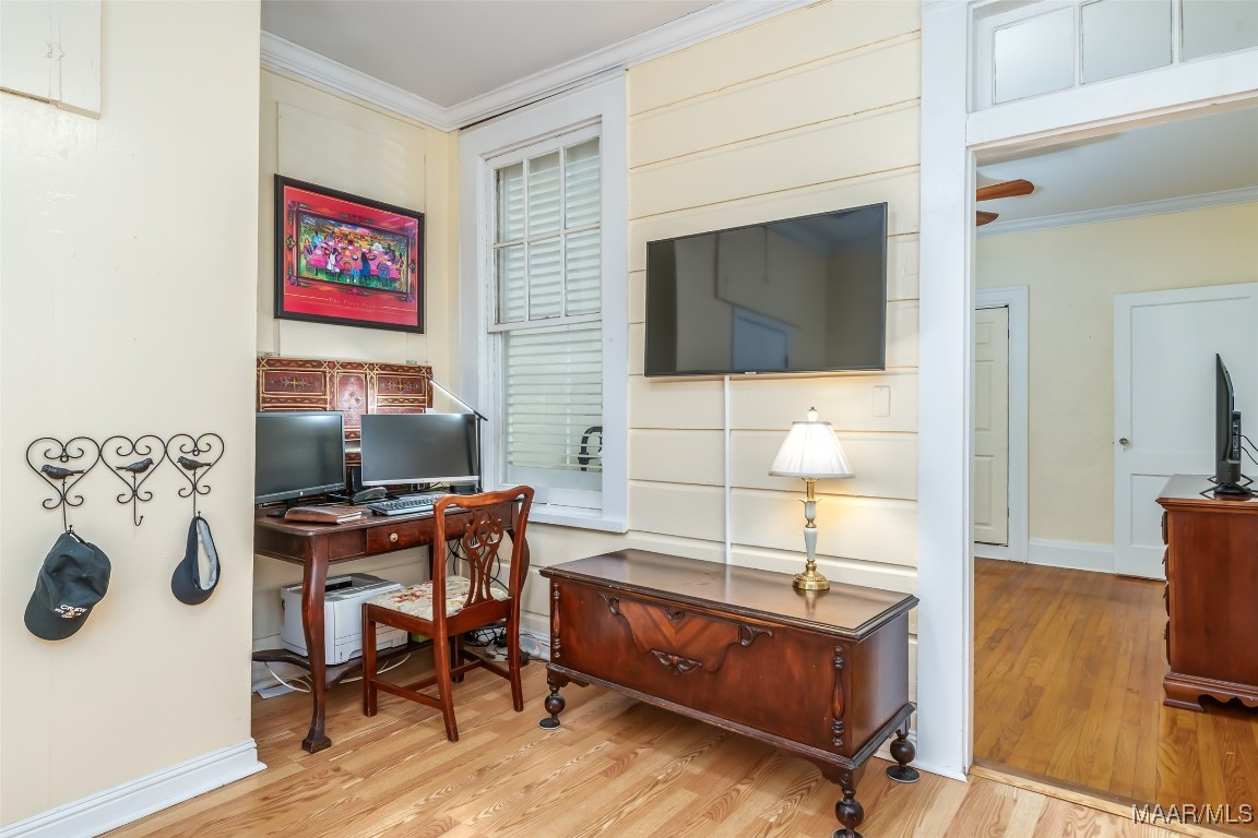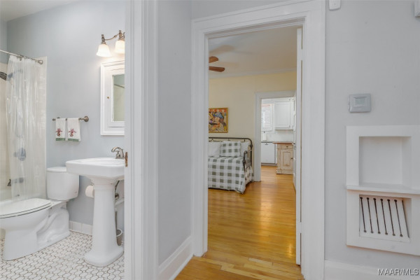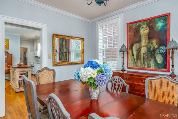 Welcome to an immaculate 3 bedroom home nestled in the heart of Historic Cloverdale. Featured in Architectural Digest! Situated on a beautiful lot and a gorgeous tree-lined street, this residence seamlessly blends historic charm with modern convenience. The charm begins with the huge front porch, and continues through the entire home! The functional floor plan includes a huge great room, a separate dining room, and a large office or flexible “swing” room. Original hardwoods throughout. Great room features beautiful stone fireplace, lots of sunlight from four big windows and very open to the dining room. The modern kitchen is a chef’s delight, offering quartz countertops, plenty of cabinet space, and a dedicated pantry. Step outside to enjoy the back patio or the well maintained backyard, perfect for entertaining or quiet relaxation. A large, detached garage provides ample storage. Architectural shingled roof approx 2 years old. Experience the best of Montgomery living in this highly sought-after neighborhood.