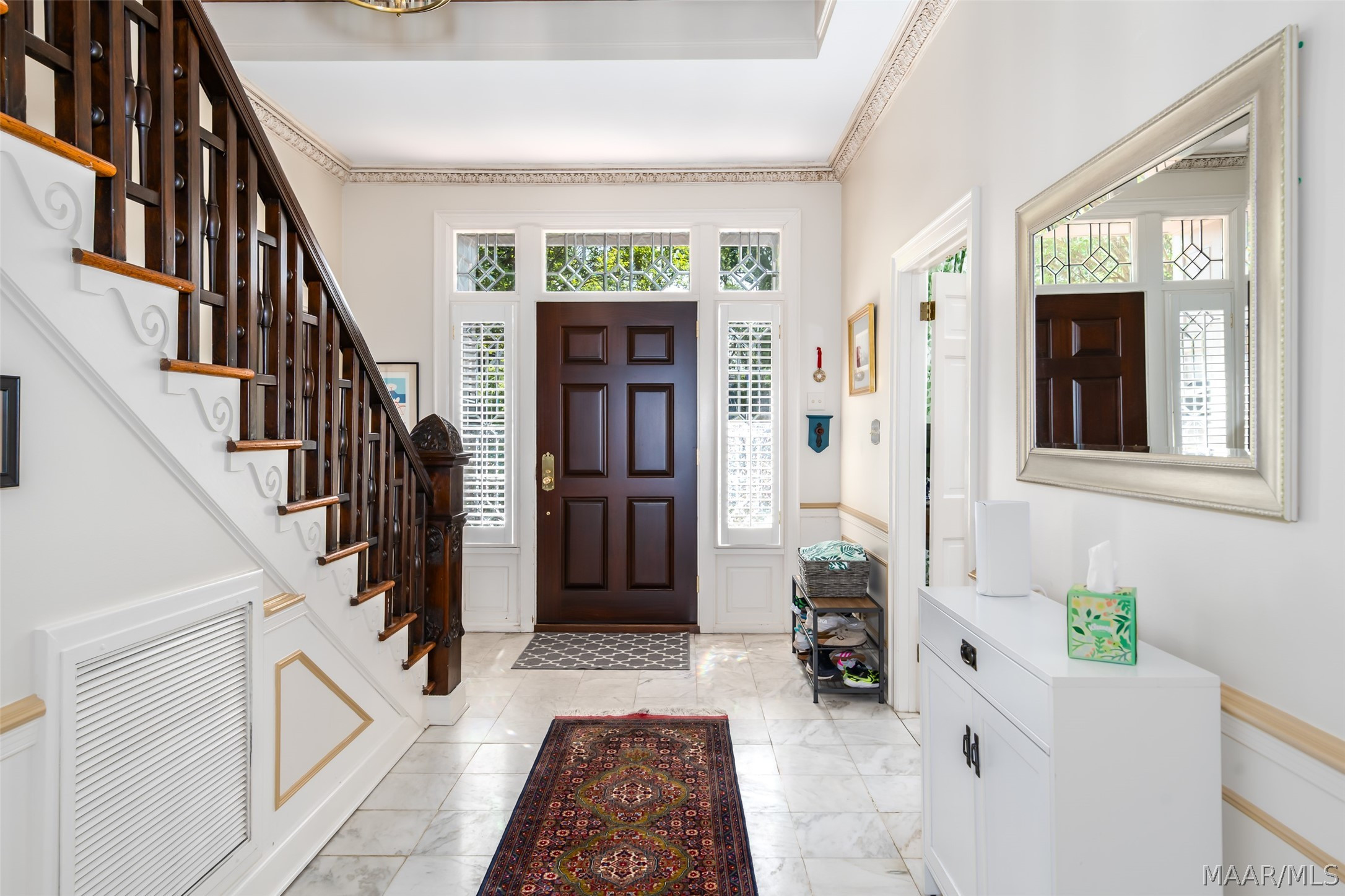 Set on a quiet street just moments from the park, this beautifully maintained Cloverdale home offers a combination of character, scale and thoughtful livability. Old Cloverdale, yet a newer home. Built as a builders personal home, and with over 3100 square feet, this home is filled with timeless details including ornate wall & ceiling moldings, herringbone walnut floors, antique staircase railings, carved fireplace mantles, 10-foot ceilings, marble foyer, and marble floored baths. Plantations shutters throughout. Fresh interior paint gives the spaces a bright, refreshed feel. As you enter into the beautiful foyer, there is a large dining room with a wall of built-ins for all your serving & storage needs, gorgeous ceiling moldings & hardwood floors. To the right of the foyer, a big living room/study with hardwood floors and wood-burning fireplace. The large family room has herringbone walnut floors, wood-burning fireplace with marble surround, French doors to patio & built-in bookcases. Half bath and laundry. The kitchen has been tastefully updated with both everyday function and entertaining in mind, featuring new double ovens 2023, a new five-burner cooktop 2025, new tile flooring, and new dishwasher 2023, new decorative hood 2025. New granite 2023, farmhouse sink, pantry, and large island with seating are just a few other kitchen features. Upstairs you will find a big master bedroom with a walk-in closet & renovated bathroom with walk-in shower and separate tub. Guest bedrooms include lots of closet space, walk in attic space, and ceiling fans in all bedrooms. The rear of the home features a private brick patio, and detached storage. Beyond its visual appeal, the home has been exceptionally cared for, with important improvements such as a new AC in 2024 and an encapsulated crawlspace with dehumidifier offering meaningful peace of mind. A rare opportunity to own a substantial, move-in-ready home in one of Montgomery’s most established and beloved neighborhoods.