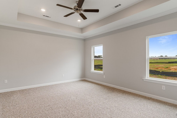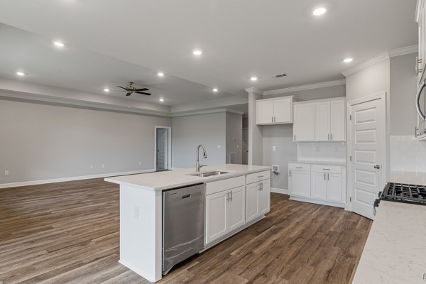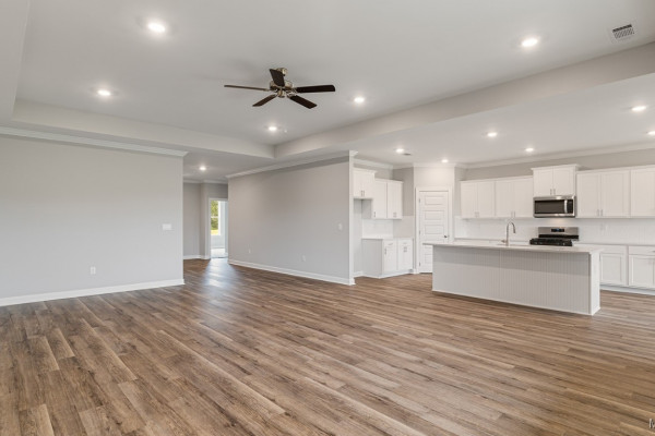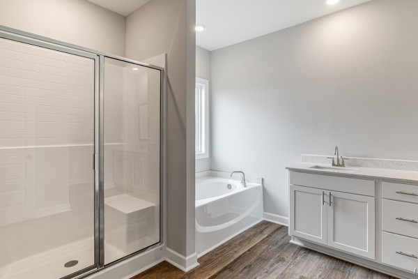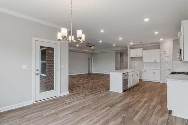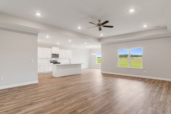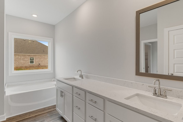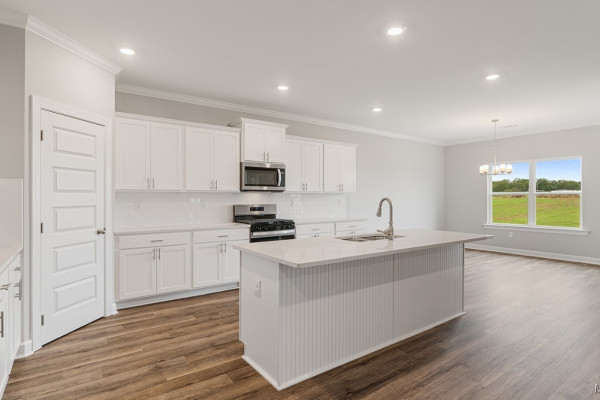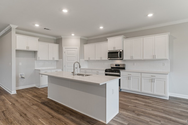 Introducing the Hawthorne floorplan at Magnolia Ridge, where every square foot is put to use with sophistication and comfort in mind. Inside this 4-bedroom, 3-bathroom home, you’ll find over 2,400 square feet of comfortable living. To top it off, it’s one of our floorplans that offers a 3-car garage. Entering the home, you are greeted by sleek Luxury Vinyl Plank flooring. Two guest bedrooms can be found just off of the foyer that share a bathroom positioned between them. Down the opposing wall is access to the garage and a separate laundry area with a walk-in closet. Tucked around the corner just off of the living room, there is an additional bedroom with a full bathroom attached. Once you enter the great room, you’ll have views of the covered back patio. The open concept flows seamlessly from the living area to the kitchen and dining space. The kitchen features shaker-style cabinetry, island with quartz countertops, stainless steel appliances and a corner pantry which are sure to make meal prep easy. The primary bedroom is situated at the back corner of the house with an ensuite bathroom that has a double vanity, separate shower, garden tub, and two spacious walk-in closets providing ample space for the most ambitious wardrobe. Like all homes in Magnolia Ridge, the Hawthorne includes a Home is Connected smart home technology package which allows you to control your home with your smart device while near or away. Pictures may be of a similar home and not necessarily of the subject property. Pictures are representational only.
