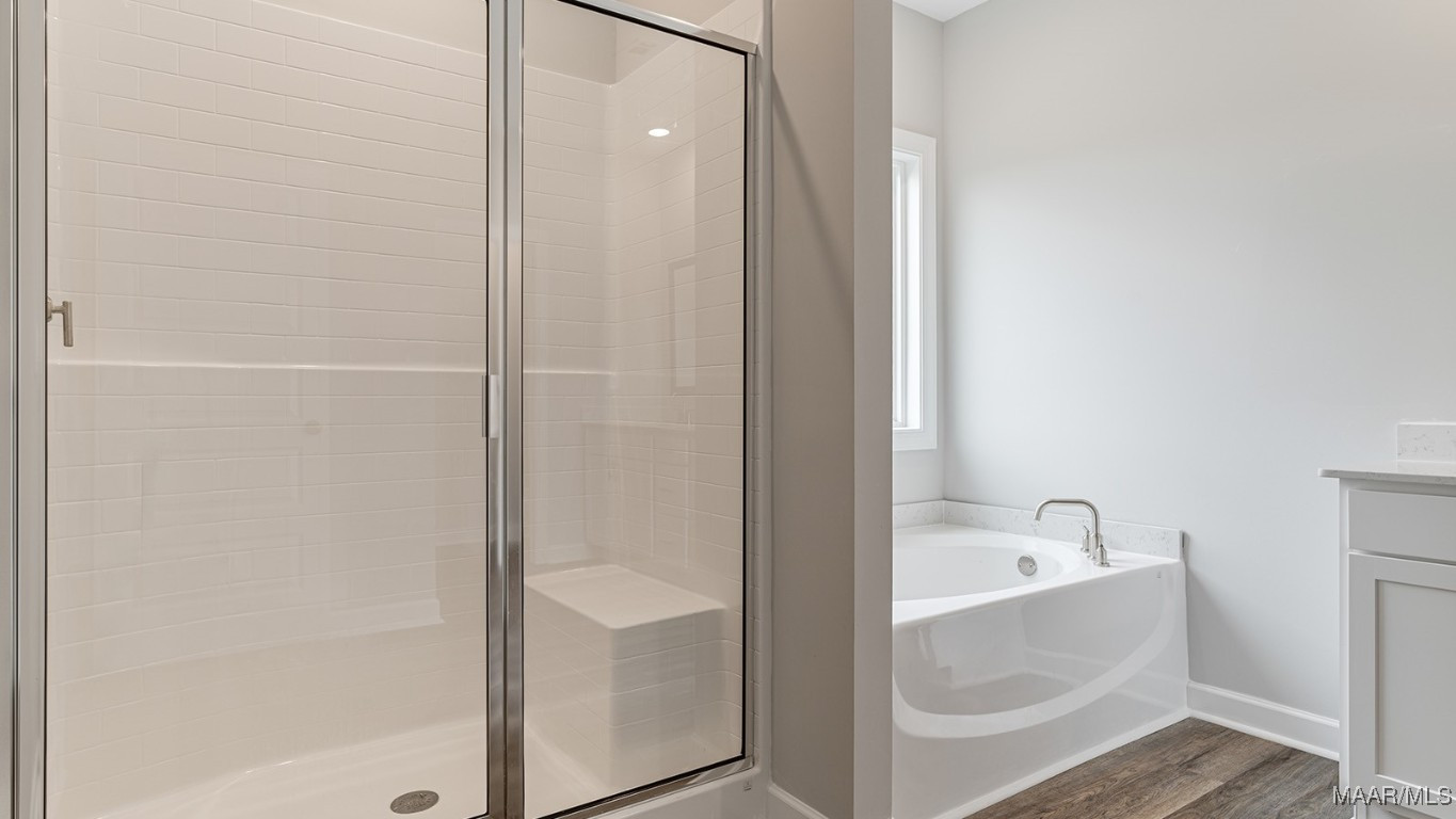 Introducing the Hawthorne floorplan at Magnolia Ridge, where every square foot is put to use with sophistication and comfort in mind. Inside this 4-bedroom, 3-bathroom home, you’ll find over 2,400 square feet of comfortable living. To top it off, it’s one of our floorplans that offers a 3-car garage. Entering the home, you are greeted by sleek Luxury Vinyl Plank flooring. Two guest bedrooms can be found just off of the foyer that share a bathroom positioned between them. Down the opposing wall is access to the garage and a separate laundry area with a walk-in closet. Tucked around the corner just off of the living room, there is an additional bedroom with a full bathroom attached. Once you enter the great room, you’ll have views of the covered back patio. The open concept flows seamlessly from the living area to the kitchen and dining space. The kitchen features shaker-style cabinetry, island with quartz countertops, stainless steel appliances and a corner pantry which are sure to make meal prep easy. The primary bedroom is situated at the back corner of the house with an ensuite bathroom that has a double vanity, separate shower, garden tub, and two spacious walk-in closets providing ample space for the most ambitious wardrobe. Like all homes in Magnolia Ridge, the Hawthorne includes a Home is Connected smart home technology package which allows you to control your home with your smart device while near or away. Pictures may be of a similar home and not necessarily of the subject property. Pictures are representational only.