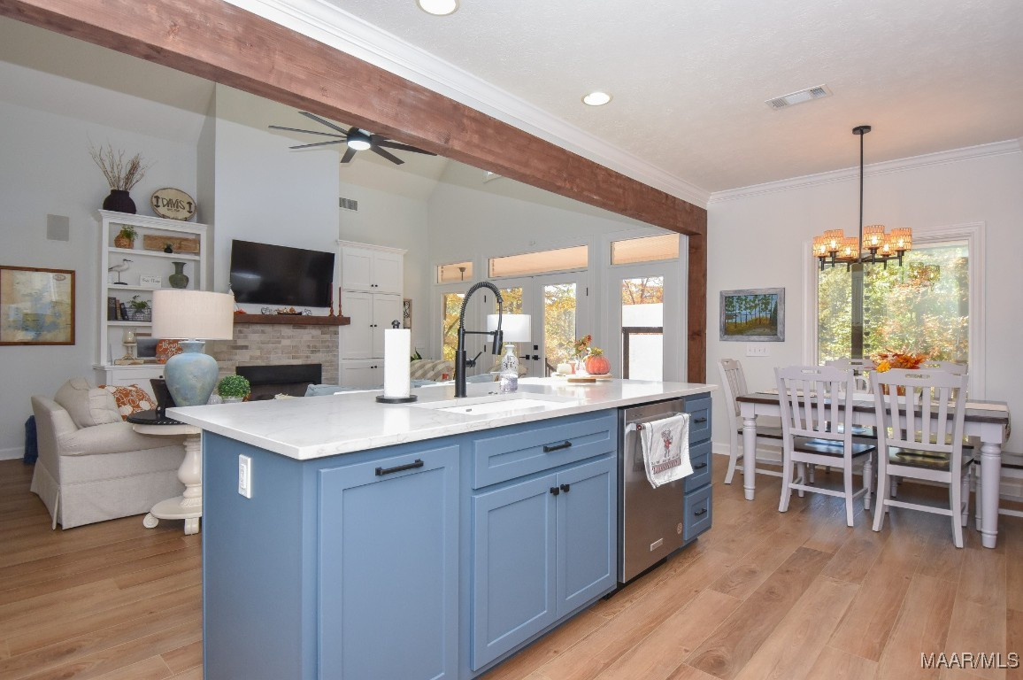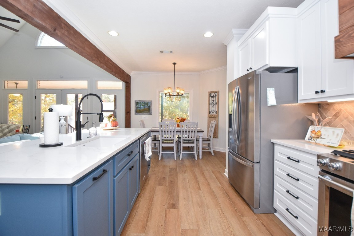 Inside, you’ll be wowed by the vaulted ceilings in the main living area, and a bright, open layout ideal for entertaining. The kitchen is all brand new with a large island that has room for barstools to grab a quick breakfast.