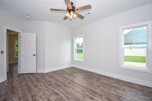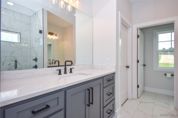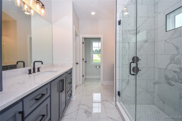 Enjoy upscale finishes throughout, including quartz countertops and low-maintenance luxury vinyl plank flooring. The bathrooms are elegantly finished with marble tile flooring, and the primary suite boasts a generously sized tiled shower with frameless glass doors. Custom built-ins in the closet add both function and style.