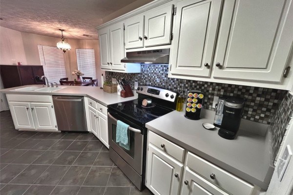 The kitchen has been refreshed with newly repainted cabinets, redone countertops, and updated plugs, switches, and plates throughout the entire home—bringing both style and functionality up to date.