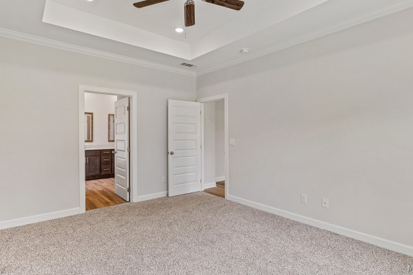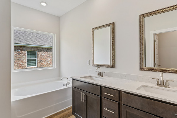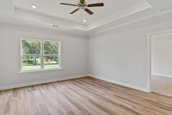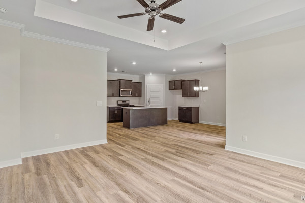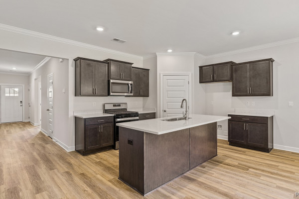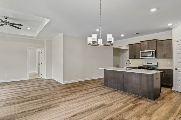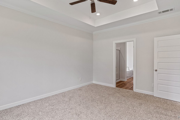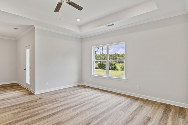 Welcome to 1084 Birch Lane! The Rhett is one of our single-story floorplans featured in our Magnolia Ridge community in Prattville, Alabama. This beautiful home is a single-level layout that offers a practical design with 4-bedrooms and 2-bathrooms with over 1,800 square feet. As you enter the home, to one side, there are two bedrooms with a guest bathroom positioned between them. Slightly down on the opposing wall provides access to the garage and a separate laundry area. Tucked in this area is an additional bedroom. A standout feature is the seamless integration of the kitchen, dining area, and great room in an open concept layout, ideal for hosting guests. The kitchen has white shaker style cabinetry, quartz countertops, stainless steel appliances, and a corner pantry. The spacious living area includes trey ceilings and leads to a shaded covered porch. The primary bedroom suite serves as a private retreat with trey ceilings, a luxurious shower, separate garden tub, double marble vanity, private water closet, and a large walk-in closet. Like all homes in Magnolia Ridge, the Rhett includes a Home is Connected smart home technology package which allows you to control your home with your smart device while near or away. Pictures may be of a similar home and not necessarily of the subject property. Pictures are representational only. Call one of our New Home Specialists today to schedule your tour!