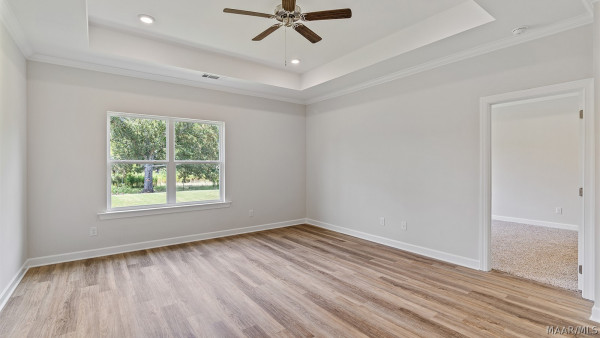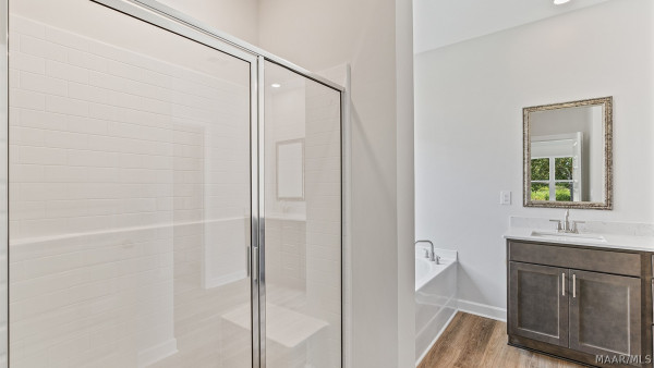 Welcome to 1084 Birch Lane! The Rhett is one of our single-story floorplans featured in our Magnolia Ridge community in Prattville, Alabama. This beautiful home is a single-level layout that offers a practical design with 4-bedrooms and 2-bathrooms with over 1,800 square feet. As you enter the home, to one side, there are two bedrooms with a guest bathroom positioned between them. Slightly down on the opposing wall provides access to the garage and a separate laundry area. Tucked in this area is an additional bedroom. A standout feature is the seamless integration of the kitchen, dining area, and great room in an open concept layout, ideal for hosting guests. The kitchen has white shaker style cabinetry, quartz countertops, stainless steel appliances, and a corner pantry. The spacious living area includes trey ceilings and leads to a shaded covered porch. The primary bedroom suite serves as a private retreat with trey ceilings, a luxurious shower, separate garden tub, double marble vanity, private water closet, and a large walk-in closet. Like all homes in Magnolia Ridge, the Rhett includes a Home is Connected smart home technology package which allows you to control your home with your smart device while near or away. Pictures may be of a similar home and not necessarily of the subject property. Pictures are representational only. Call one of our New Home Specialists today to schedule your tour!
