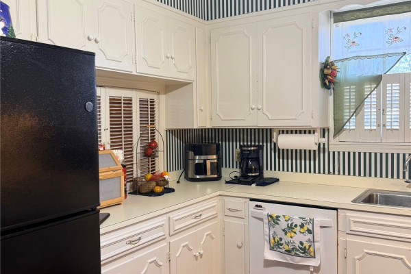 A versatile in-law suite with a kitchenette is currently set up as a home office—ideal for guests, multigenerational living, or working from home. Cozy up by either of the two fireplaces (gas and wood-burning), one in each of the livng areas, den and living room, enjoy meals in the dining room, and unwind in the fenced backyard with a lovely gazebo.