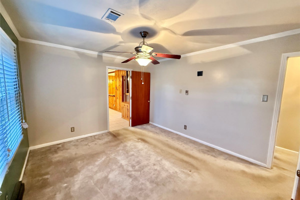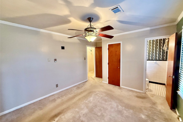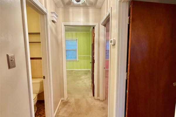 The home includes three bedrooms, with one bedroom featuring it own attached half bath, while the full bath is conveniently located off the hallway. A laundry room and one-car carport add to the home’s practicality.