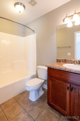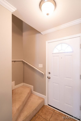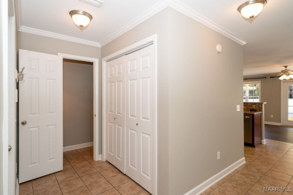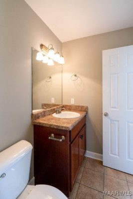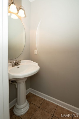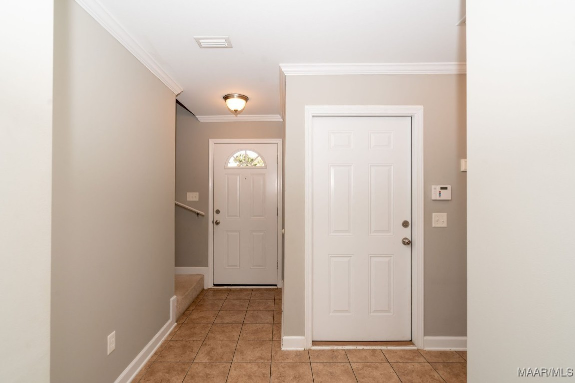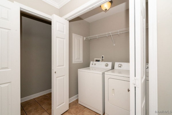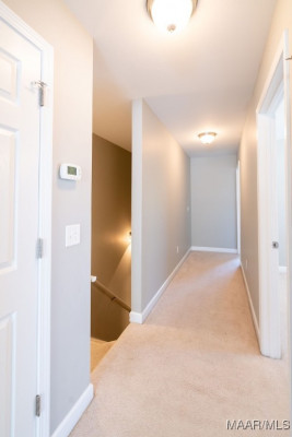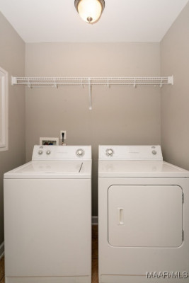 Downstairs, you’ll find durable tile and luxury vinyl plank (LVP) flooring throughout the main living areas. The kitchen features stainless steel appliances, including refrigerator, range, microwave, and dishwasher. A convenient powder bathroom is privately tucked away from the main living spaces, and a washer and dryer are included in the interior laundry room for added convenience. There is a large pantry closet under the stairs just off the kitchen.