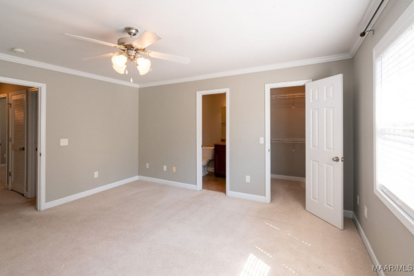 Upstairs, the spacious primary suite is filled with natural light and offers a private ensuite bathroom and a large walk-in closet. Two additional bedrooms share a full bathroom, ideal for family or guests. There is a large linen closet located on the second floor.