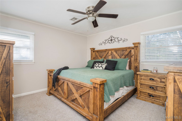 Welcome home! This lovely 3-bedroom, 2-bathroom home features a spacious open floor plan with stylish LVT flooring and recessed lighting. The kitchen is a highlight, offering granite countertops and a 2-year-old gas stove, with the refrigerator and microwave included. You will love the remodeled master bedroom, and the entire home feels fresh with 2-year-old carpet throughout! Major updates provide great peace of mind, including a brand-new gas and electric AC system and a 2-year-old water heater. The home is tucked away in a quiet cul-de-sac with a large, fenced-in backyard and a covered patio. Best of all, you are in the same neighborhood as two Prattville schools and just moments away from local shopping and dining. Contact us today to schedule a showing!