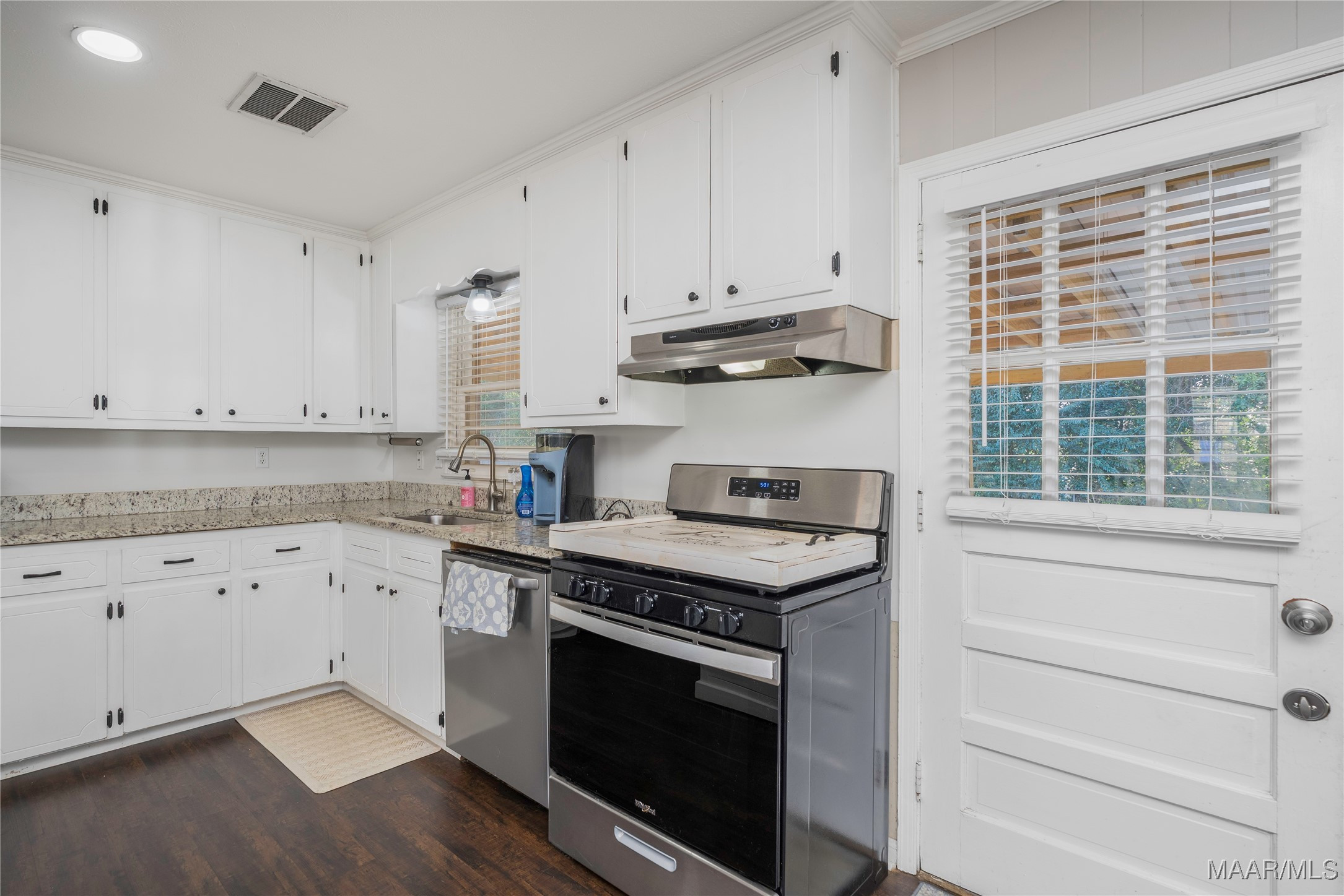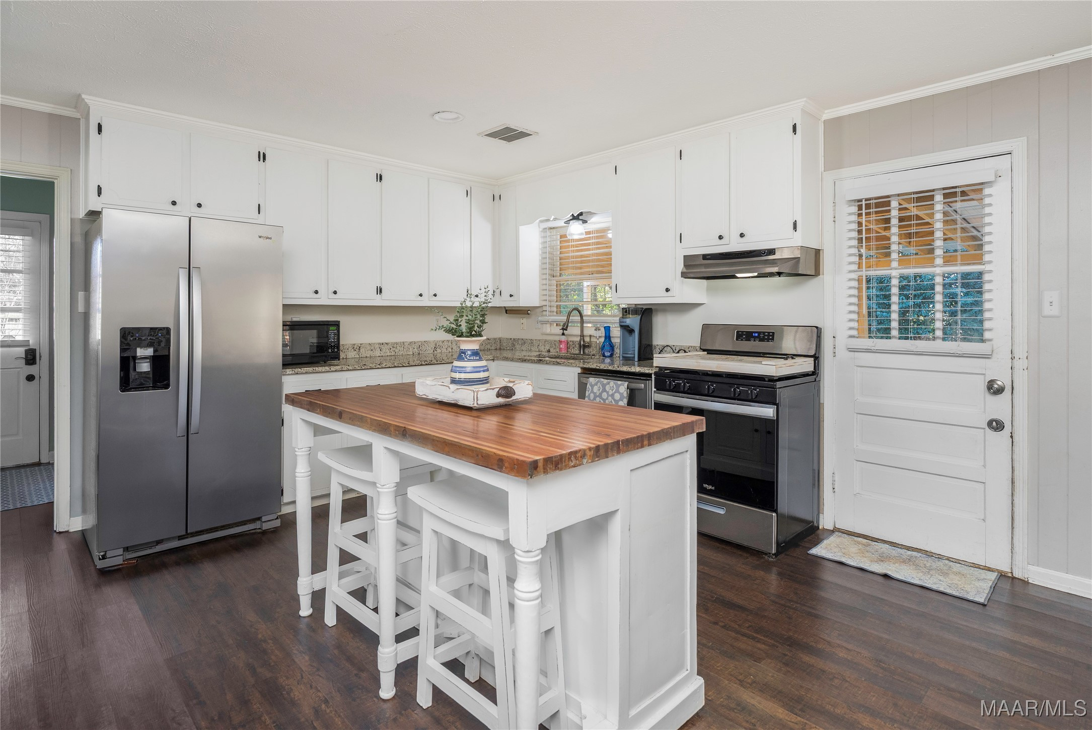 Welcome home! This lovely 3-bedroom, 2-bathroom home features a spacious open floor plan with stylish LVT flooring and recessed lighting. The kitchen is a highlight, offering granite countertops and a 2-year-old gas stove, with the refrigerator and microwave included. You will love the remodeled master bedroom, and the entire home feels fresh with 2-year-old carpet throughout! Major updates provide great peace of mind, including a brand-new gas and electric AC system and a 2-year-old water heater. The home is tucked away in a quiet cul-de-sac with a large, fenced-in backyard and a covered patio. Best of all, you are in the same neighborhood as two Prattville schools and just moments away from local shopping and dining. Contact us today to schedule a showing!