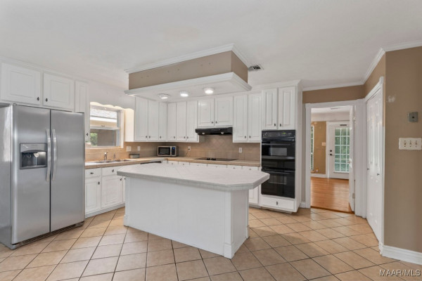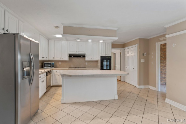 At the heart of the home, the large kitchen features a work island (with room for barstools), double ovens, and a pantry, with the laundry room conveniently located nearby. Whether hosting holiday dinners or casual breakfasts, the layout was designed with functionality in mind.