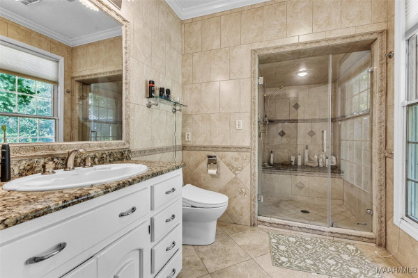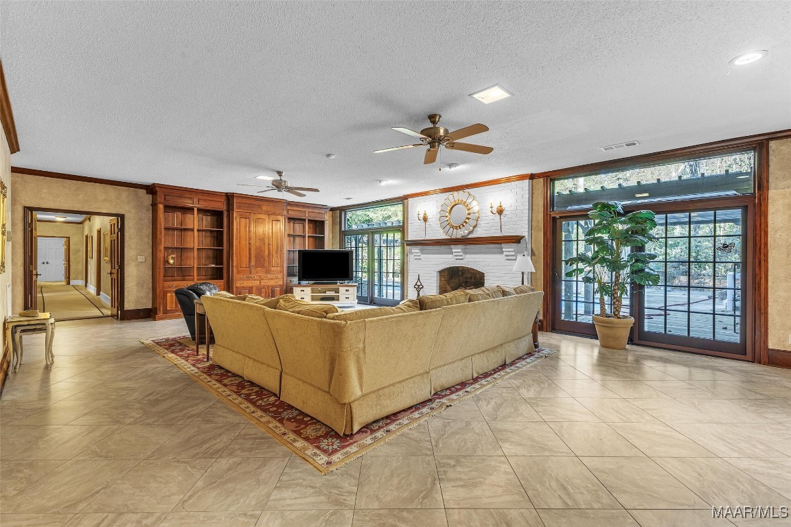 • Formal & Family Spaces: Host in style with a grand formal dining room filled with natural light, an elegant formal living room, and a massive family room featuring a fireplace with gas logs, built-in shelving, and double doors opening to your private outdoor oasis.