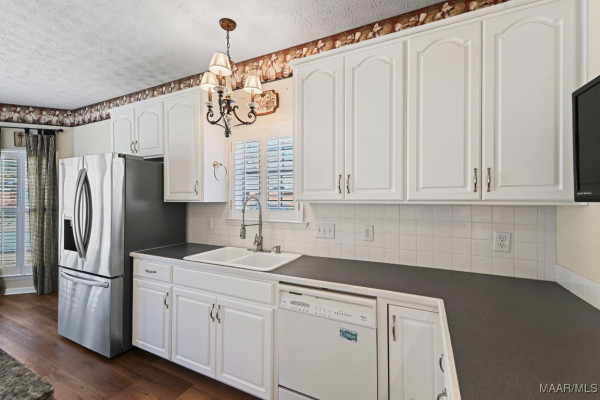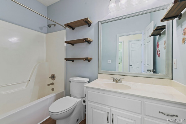 Lovely 3BR/2BA brick home located in a well-established neighborhood convenient to everything Wetumpka has to offer! This inviting home features a functional floor plan with an eat-in kitchen, perfect for everyday meals and entertaining. The main bedroom is super spacious, with an en suite bath featuring split vanities, a garden tub and lots of closet space. Enjoy outdoor living on the covered back porch overlooking the fully fenced backyard—ideal for relaxing, pets, or play. You will love to take a walk or go for a quick jog on these neighborhood sidewalks! Additional highlights include a garage for parking and storage, updated flooring, a gas log fireplace, durable brick construction, and a location close to shopping, dining, schools, lakes, I-65 and I-85. A wonderful place to call home—schedule your showing today!