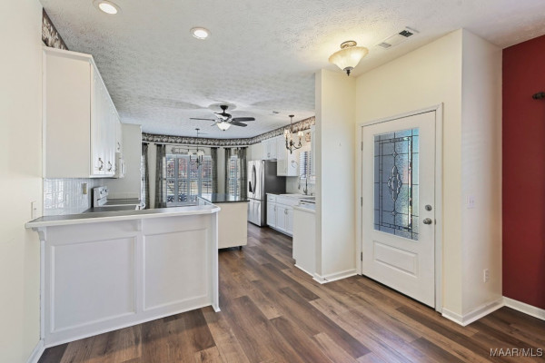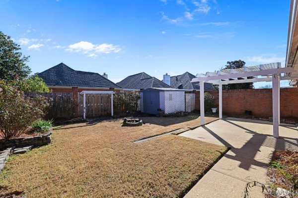 Lovely 3BR/2BA brick home located in a well-established neighborhood convenient to everything Wetumpka has to offer! This inviting home features a functional floor plan with an eat-in kitchen, perfect for everyday meals and entertaining. The main bedroom is super spacious, with an en suite bath featuring split vanities, a garden tub and lots of closet space. Enjoy outdoor living on the covered back porch overlooking the fully fenced backyard—ideal for relaxing, pets, or play. You will love to take a walk or go for a quick jog on these neighborhood sidewalks! Additional highlights include a garage for parking and storage, updated flooring, a gas log fireplace, durable brick construction, and a location close to shopping, dining, schools, lakes, I-65 and I-85. A wonderful place to call home—schedule your showing today!